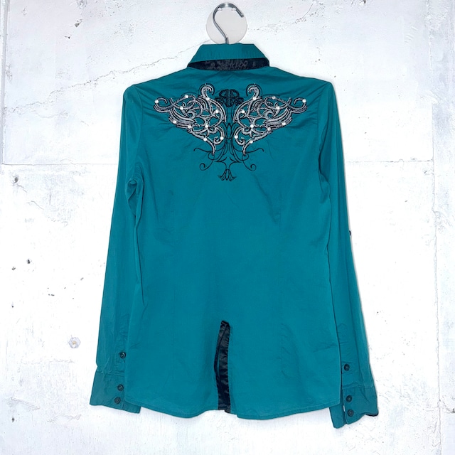 “Roar”mint green tribal rhinestone shirt